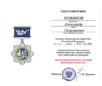 03 июля 2025 года Новикову Александру Георгиевичу присвоено почетное звание «Почетный работник газовой промышленности» за большой личный вклад в развитие топливно-энергетического комплекса и многолетний добросовестный труд.